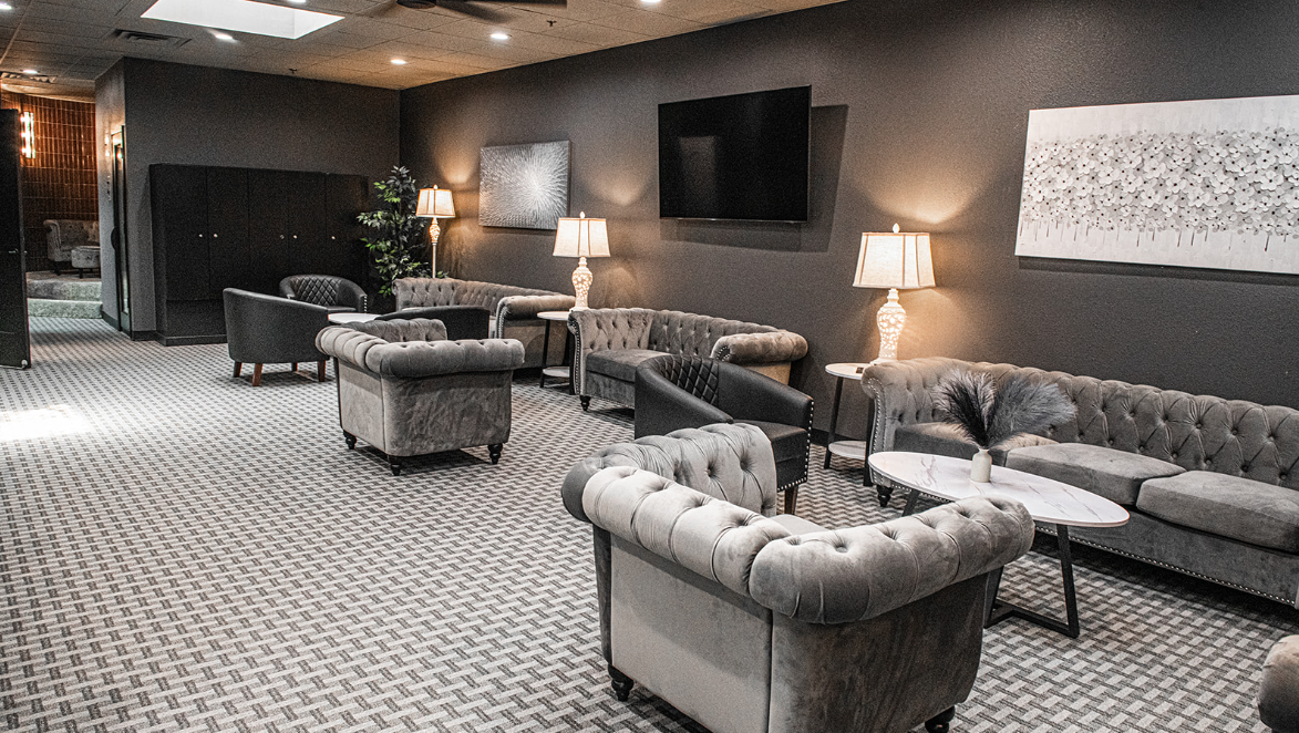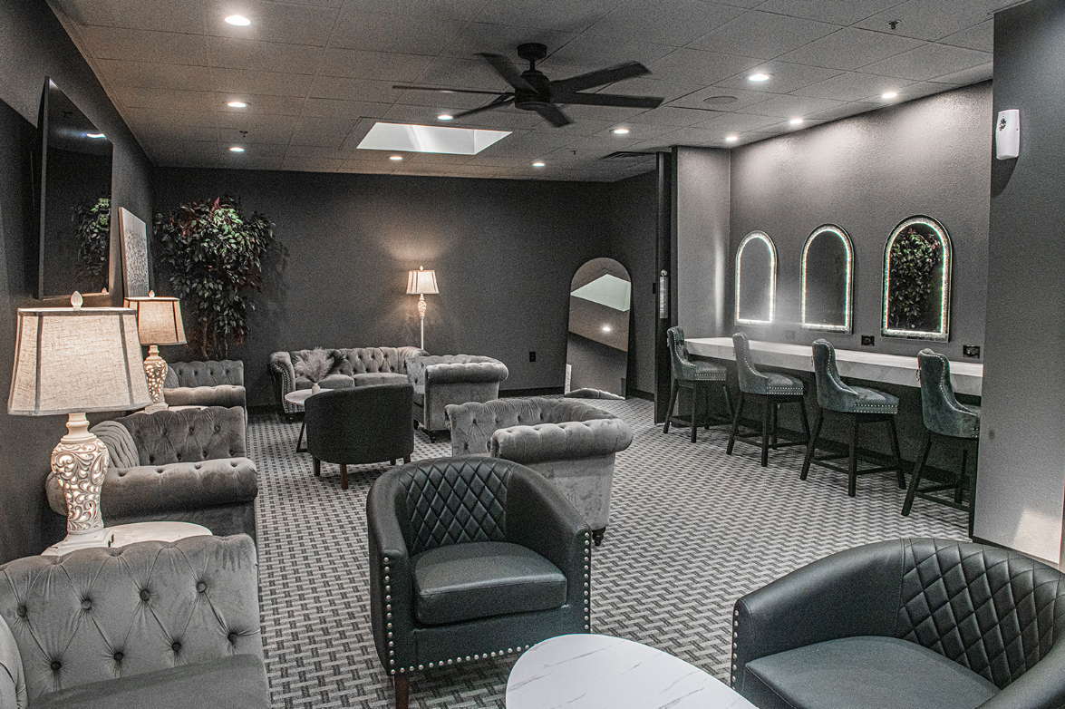 Welcome to our luxurious bridal suite — the perfect space for you and your bridal party to relax and get ready in style on your big day. This elegant lounge features plush tufted sofas, chic armchairs, and softly lit lamps that create a warm and inviting atmosphere. The suite includes a dedicated glam area with lighted vanity mirrors and comfortable barstool seating, ideal for makeup artists and hairstylists to work their magic. With its modern yet timeless design, cozy seating areas for lounging, and full-length mirror for final dress checks, this room offers everything a bride needs to prepare, unwind, and enjoy every moment before walking down the aisle.